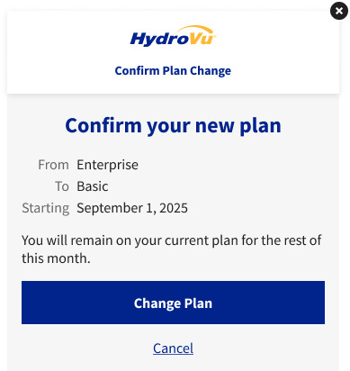 Downgrades: These take effect at the start of the next billing cycle. Downgrades can be cancelled.