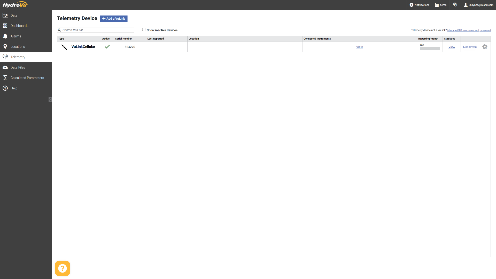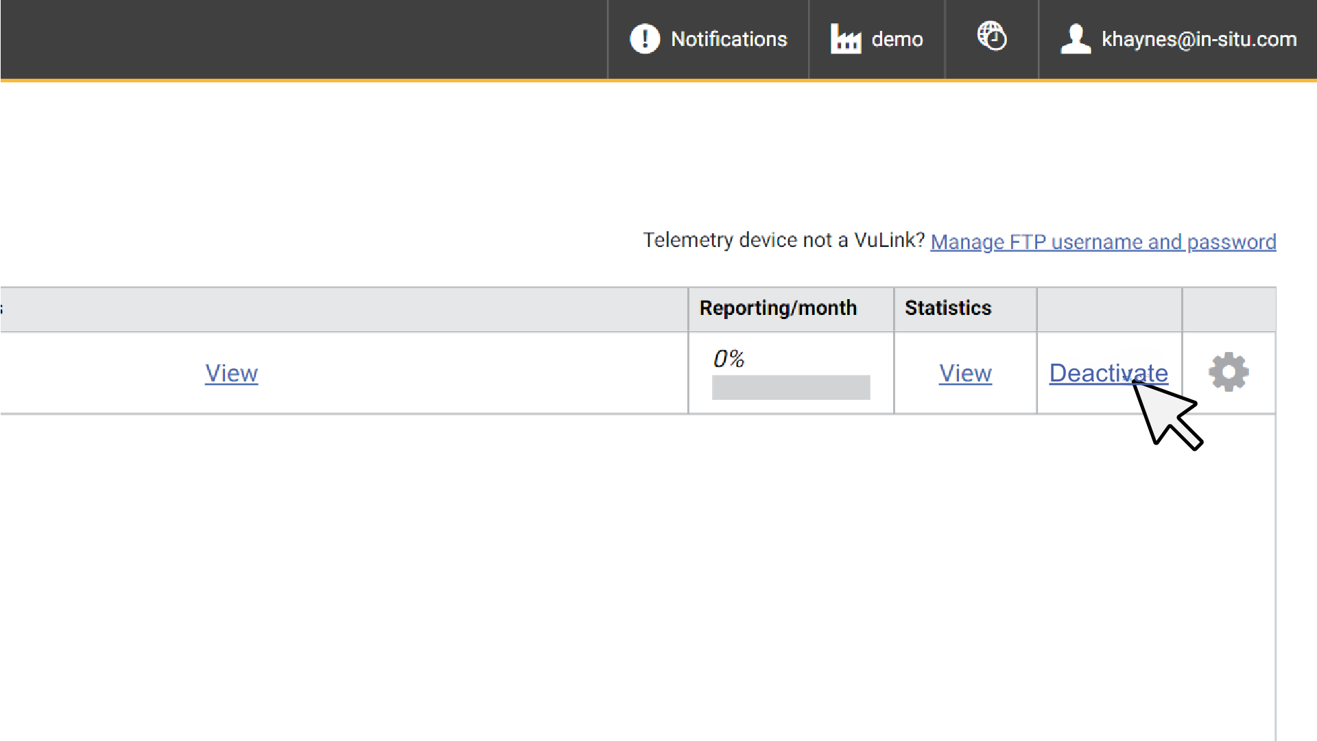 3. Locate the telemetry device you want to deactivate and click Deactivate.